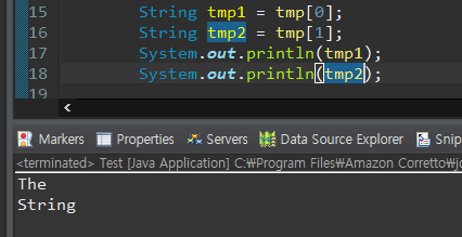 위에서는 " "(공백)으로 나누었기 때문에 배열에 하나하나 저장될 때 단어별로 정리가 된 것입니다.