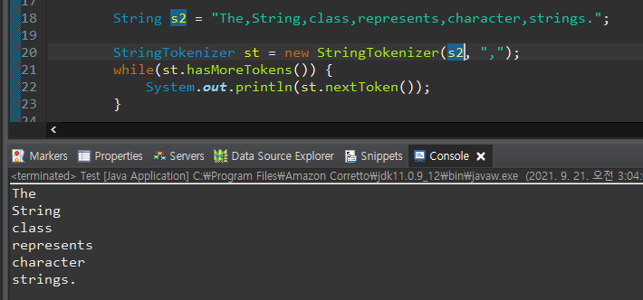 역시 말 그대로 문자열을(String) 토큰화한다(Tokenizer)라고 생각하시면 됩니다.