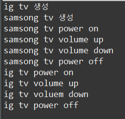 System.out.println("ig tv power on");